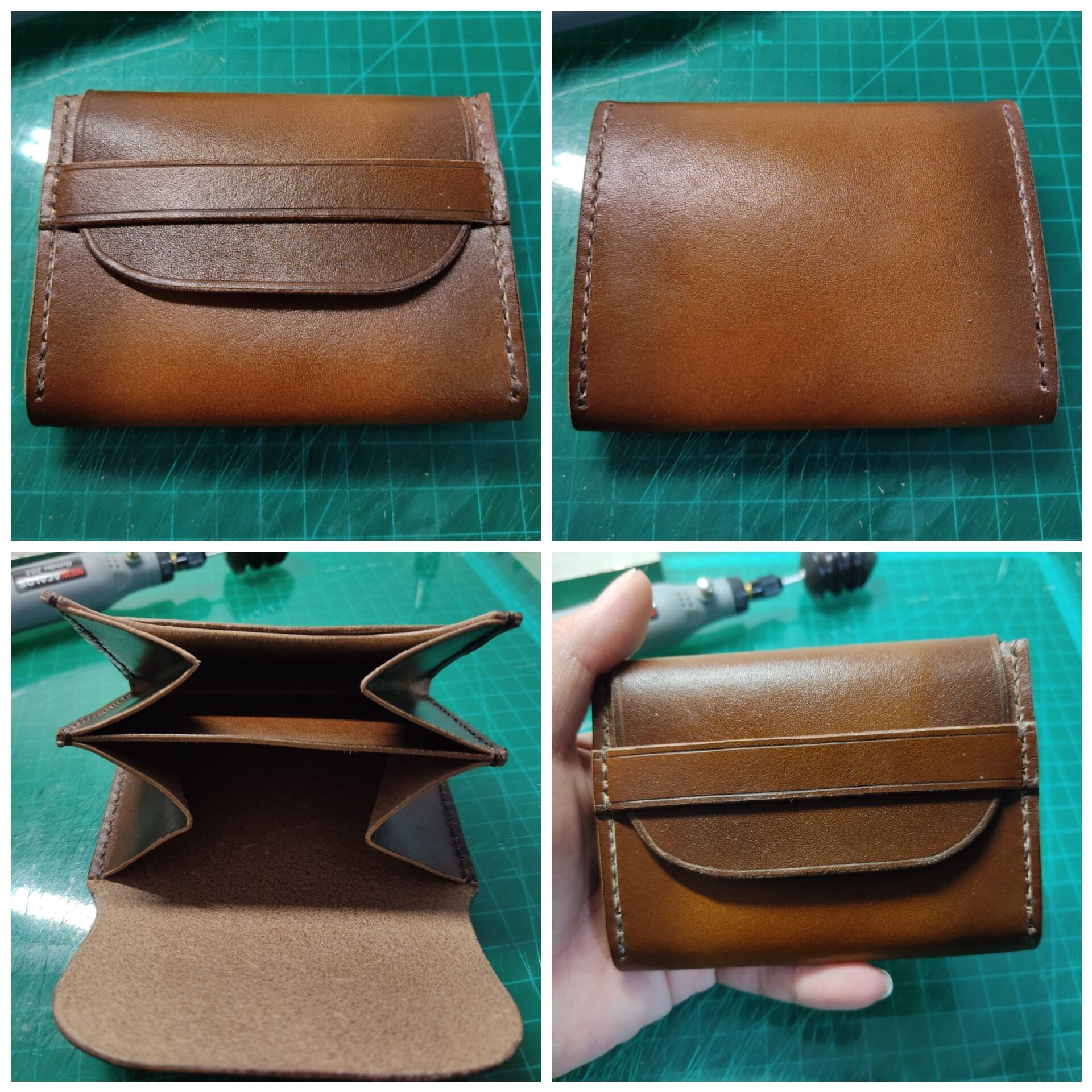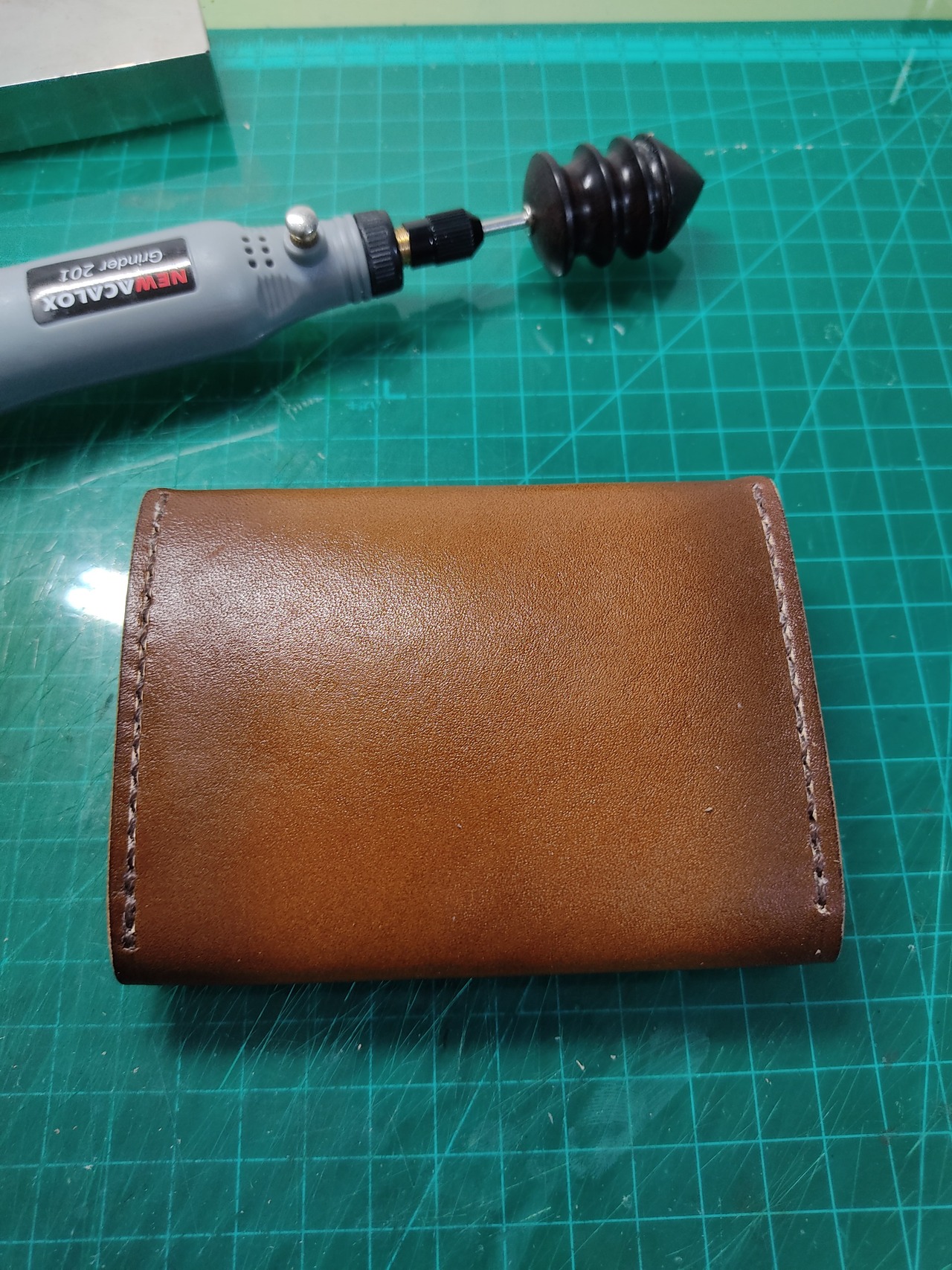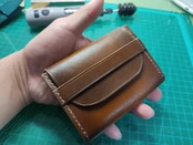 丈夫な1.5mm厚のヌメ革を茶色に染めて質実剛健な名刺入れに仕立てました。