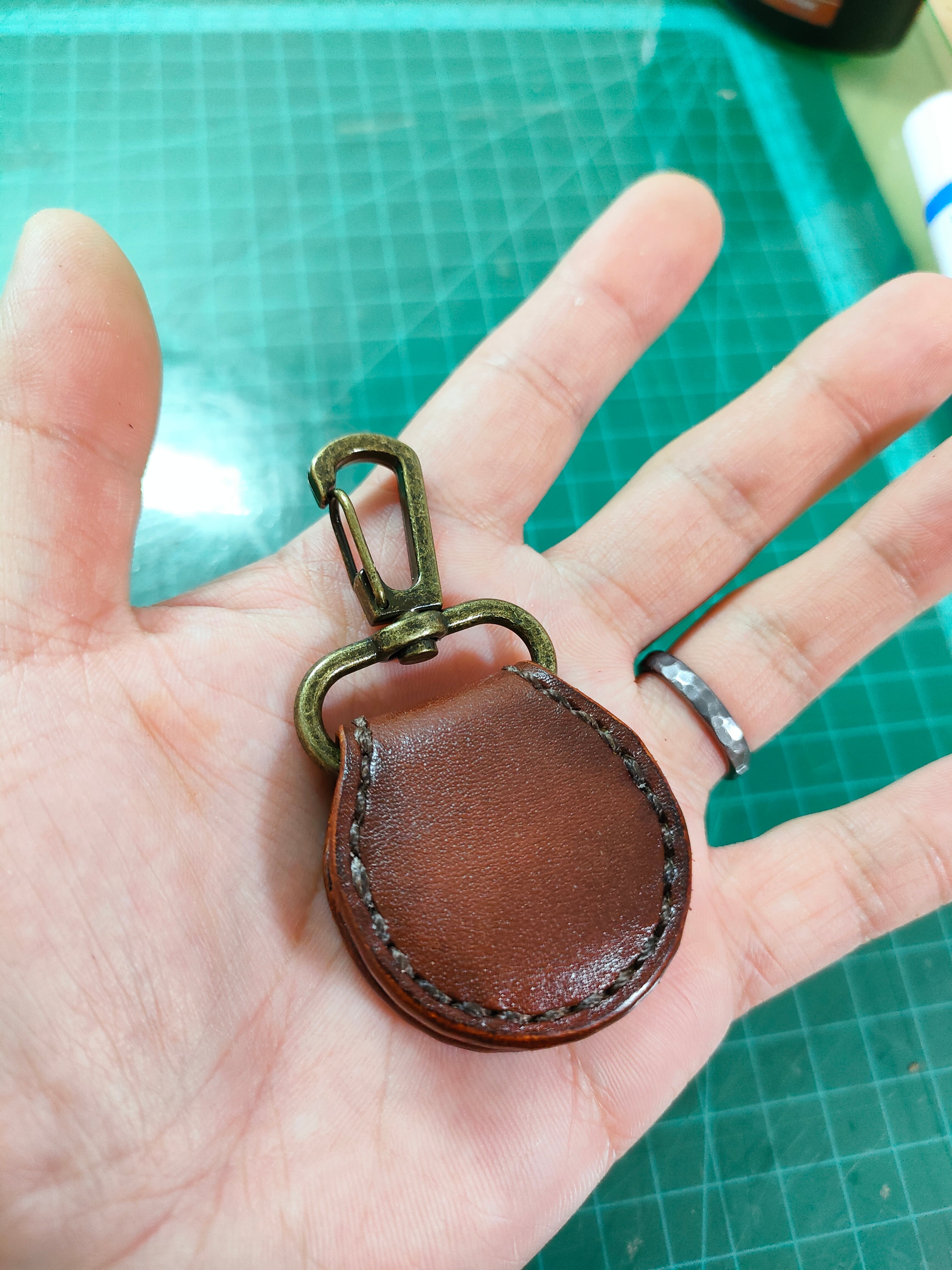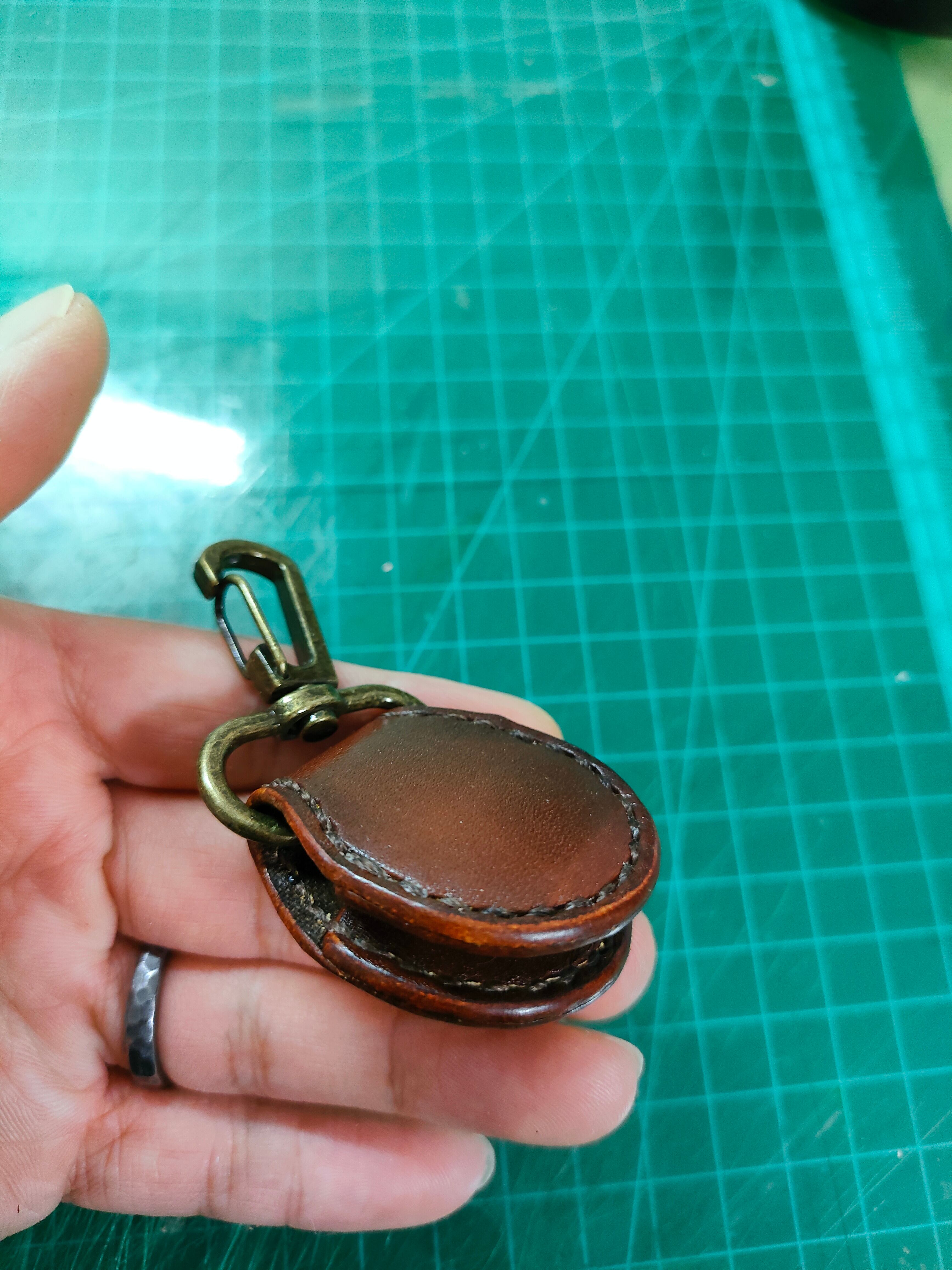 1.5mm厚のヌメ革を染色して手縫いで仕上げています。