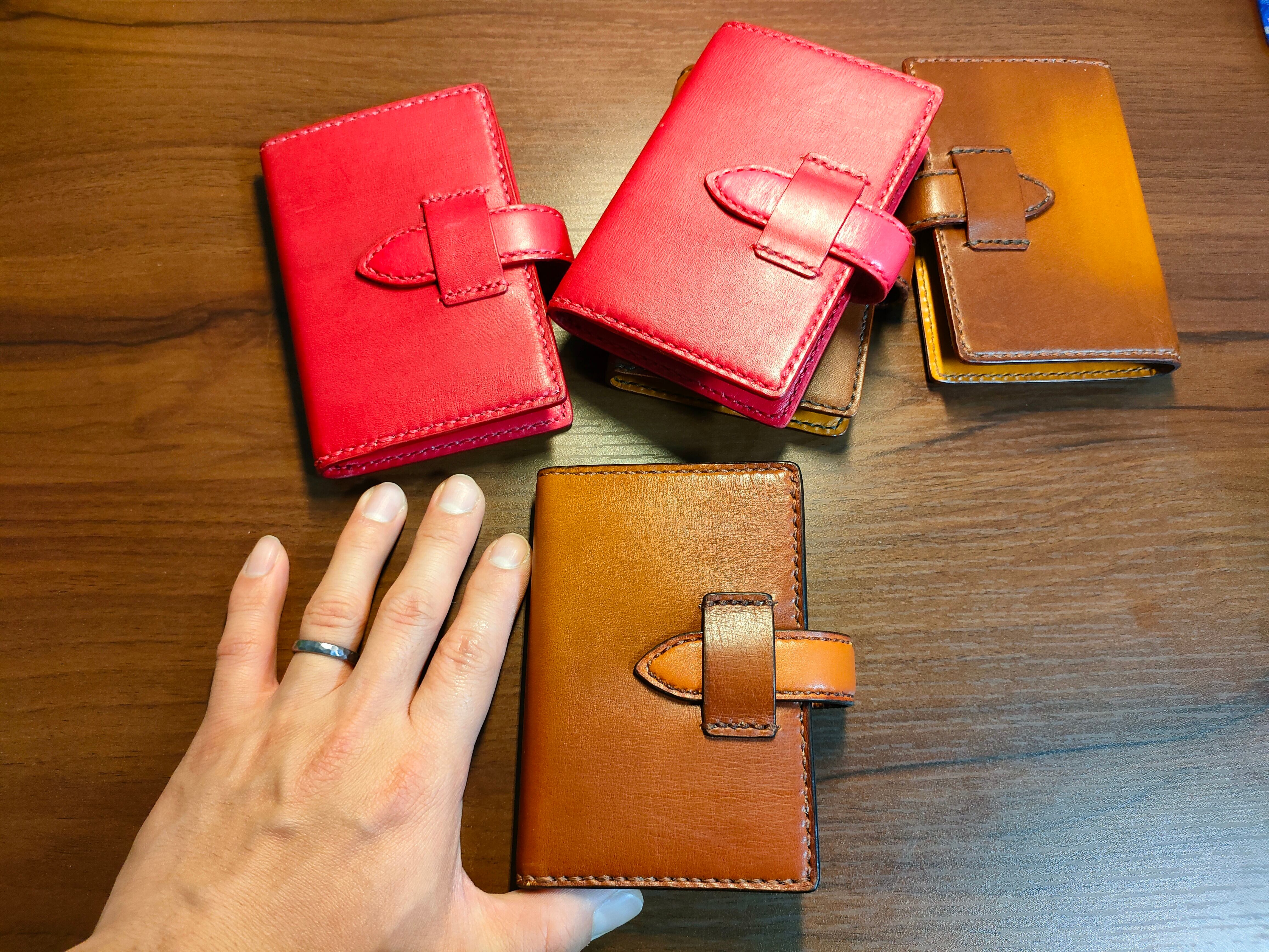 フルサイズのシステム手帳と同じ作り方で仕上げていますので、表革と内革の間には芯材を挟んでおり、柔らかすぎず硬すぎず、書き心地良く仕上げました。