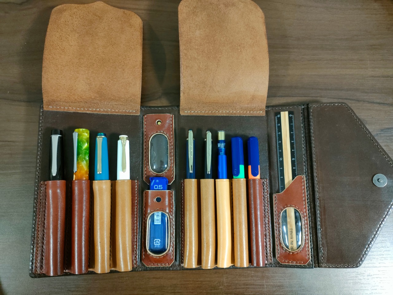 やたらと時間かかったけど完成しました。万年筆を普段使いしたくてもいい感じの筆箱が無いんですよね。万年筆用の5本差しや10本差しはあっても、万年筆しか入らないんです。普段使いするならシャープペンやボールペン、定規に消しゴムもほしいところ。