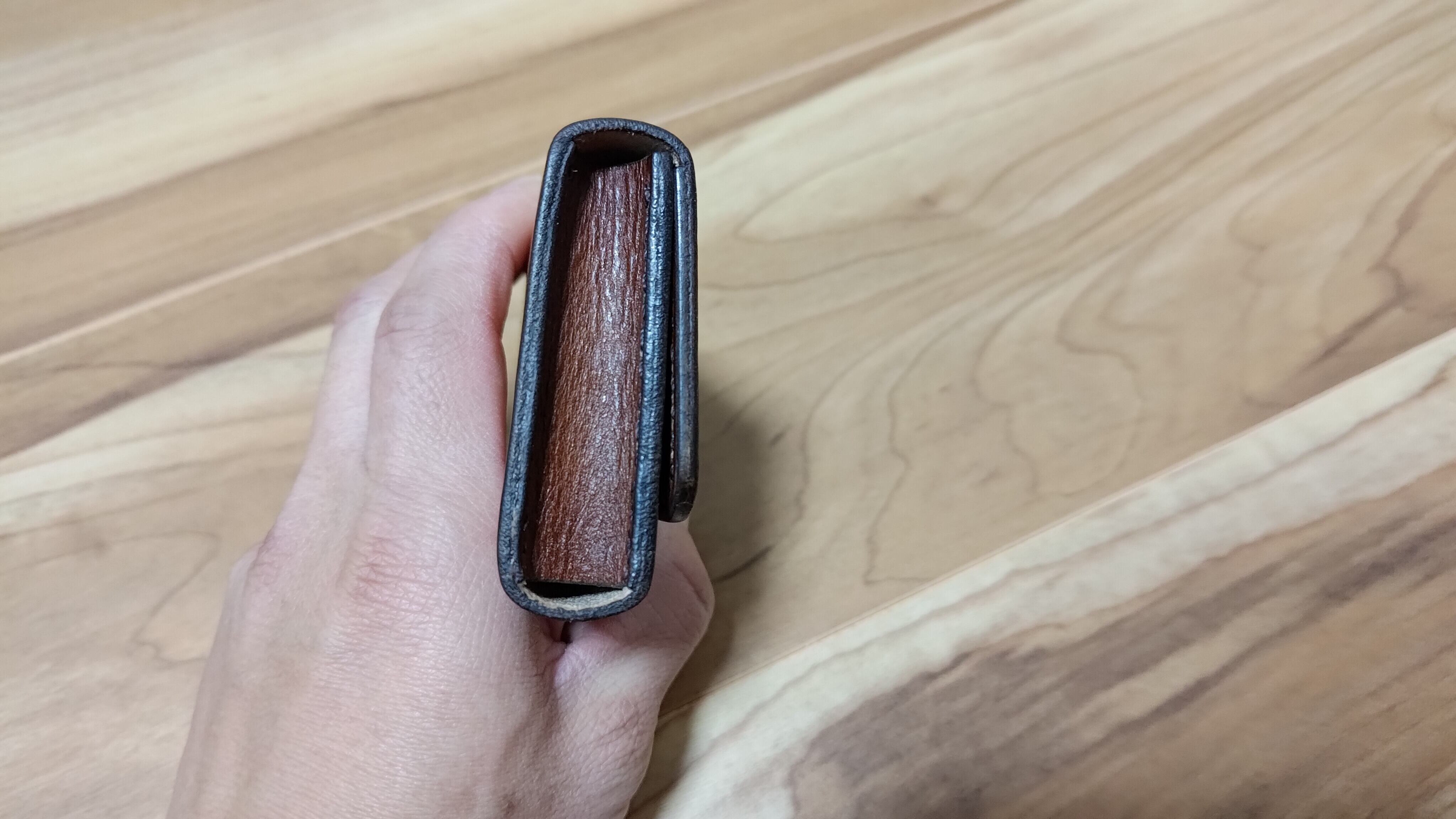 カードが最大で15枚収納できるシンプルなヌメ革のカードケースです。