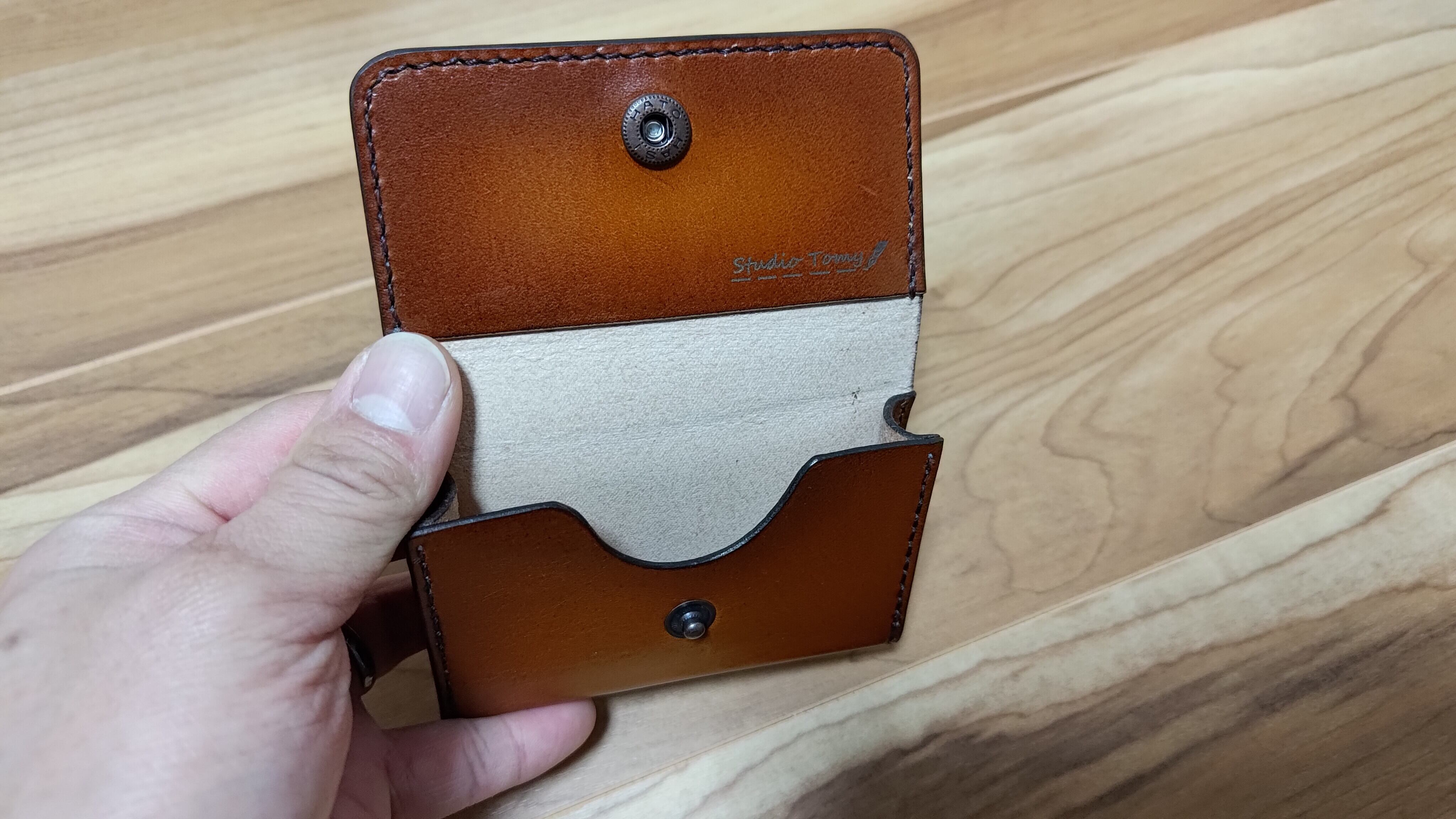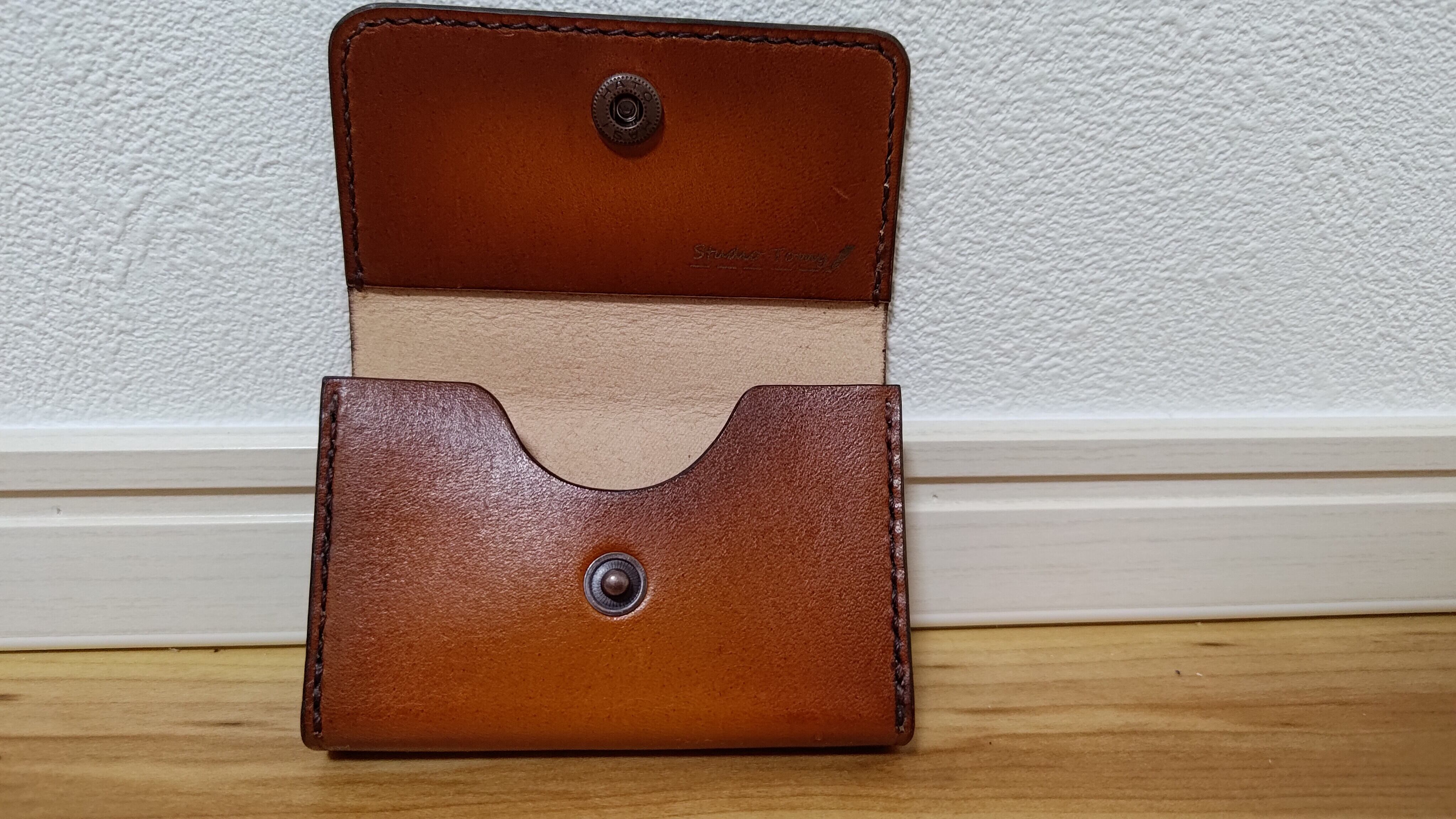余計な仕切りや機能を取っ払って、ガバっと収納してサッと出せるカードケースです。ヌメ革なので使っているうちにエイジングして色濃く艶が出てきます。