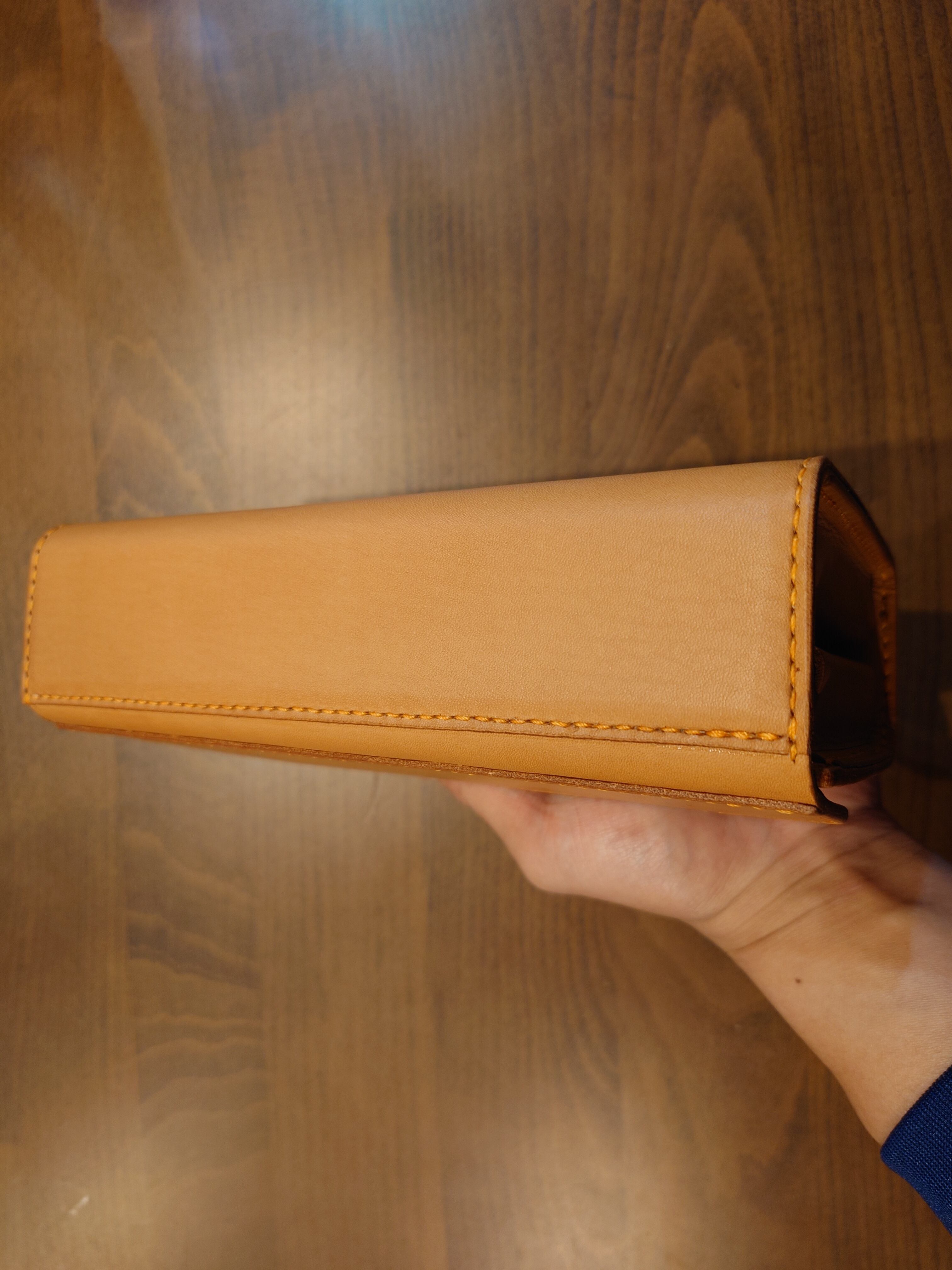 使うペンや使用用途に合わせて、完全オーダーメイドで制作いたします。写真のものはサンプルで、要望に合わせて設計します。値段は概算で、使用する革や構造などによって変動します。まずはご相談ください。